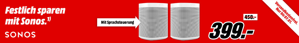 Erstmals so wirklich im Angebot ist zudem der normalerweise 229 Euro teure Sonos One mit Alexa-Integration, die dank eines Updates in dieser Woche noch einmal deutlich besser geworden ist. Abseits der Mega Tiefpreisspätschicht bekommt ihr das Doppelpack der Multiroom-Lautsprecher für 399 Euro.