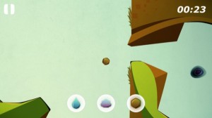 Und genau mit dieser Taktik gilt es den Ausgang zu finden. Die Kugel bahnt sich seinen Weg selbst, man hat nur auf die unterschiedlichen Elemente mit deren verschiedenen Fertigkeiten Einfluss. Wer das Level in einer vorgegebenen Zeit absolviert, erntet dafür sogar bis zu drei Sterne. Die Welten sind Retina-optimiert und warten mit unterschiedlichen Schwierigkeiten auf. So gibt es zum Beispiel Abgrenzungen, auf denen man nur mit dem Stein rollen kann.