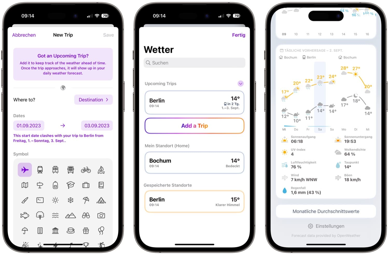 Wenn man für ein paar Tage unterwegs ist, ganz egal ob für einen Urlaub, einen Städtetrip oder einfach nur einen Tagesausflug, dann ist es ja in quasi allen Wetter-Apps so: Man speichert den entsprechenden Zielort als Favorit ab und muss dann ständig zwischen den Städten hin und her wechseln.