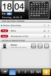 Ich komme mit dem Kalender-App von Apple wunderbar zurecht, mir fehlt da momentan nur eine Wochenansicht im Querformat – sonst nix. Alles andere funktioniert wunderbar, die Synchronisation über MobileMe, Einladungen annehmen/ablehnen, Geburtstage, etc etc.