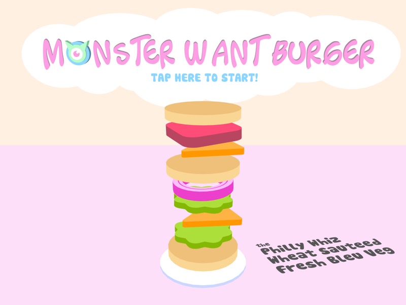 Das Ziel von Monster Want Burger, das sich offiziell an eine Zielgruppe im Alter von 6 bis 8 Jahren richtet, aber durchaus auch Erwachsenen Spaß bereiten kann, ist das schnelle Füttern eines gefräßigen Monsters mit selbstgebauten Burgern. Letzere fallen in ihren Einzelteilen von oben auf einen Teller herab und müssen vom Spieler möglichst schnell zusammengesetzt werden, ohne dass die Zeit abläuft.