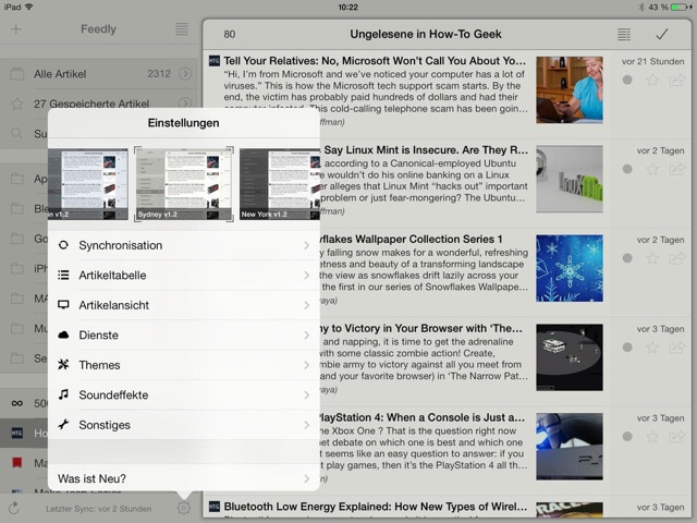 Eigentlich ein toller Reader, aber warum muss man mindestens 2500 Feeds laden? Ich bin doch kein Zeitungsredakteur! 100 würden mir vollkommen reichen, die dann auch offline verfügbar sein müssten.