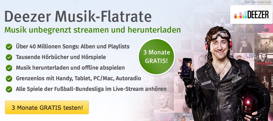 - Deezer Premium 3 Monate kostenlos testen (zum Angebot)