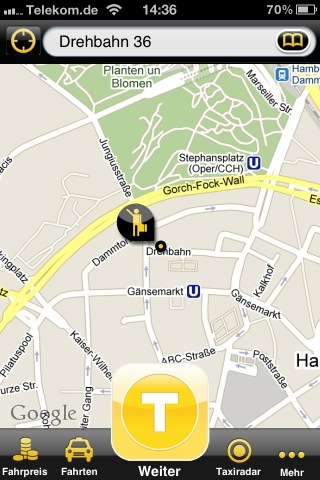 … Geniales App. In Hannover gibt’s schon 3 Taxen in der Innenstadt. … es werden bestimmt noch mehr