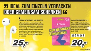 ProMarkt: 20 Prozent Rabatt auf 25 Euro iTunes-Karten bis zum 11. Dezember.