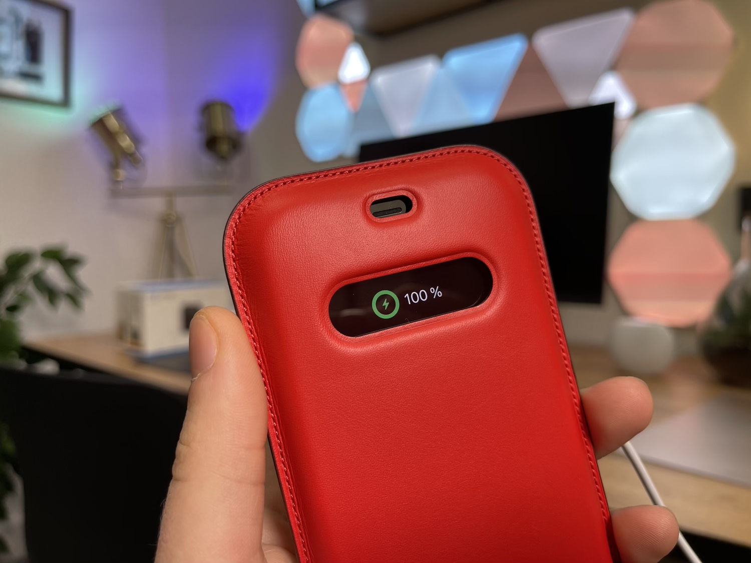 Die Lederhülle ist natürlich mit MagSafe kompatibel und erkennt das eingesteckte iPhone doch. Hier wollte anfangs bei uns einfach keine Animation erscheinen, schiebt man das iPhone aber wirklich komplett nach oben, erkennt das iPhone die Lederhülle, dunkelt das Display ab und zeigt entsprechend der Hüllenfarbe die Uhrzeit in unserem Fall in Rot an.
