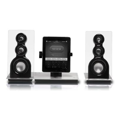 Die Lautsprecher werden einfach an der Docking-Station in der Mitte angeschlossen, hier gibt es ein kurzes Kabel, aber auch ein längeres, um die Boxen vernünftig platzieren zu können. Bei der Wiedergabe wird das iDevice natürlich aufgeladen. Wichtig ist natürlich der Sound: Hier beziehen wir uns auf das Urteil des Testers im Video, der damit sehr zufrieden war. Durch den Equalizer erreicht man ein gutes Klangerlebnis. Die unverbindliche Preisempfehlung liegt bei 399 Euro, da das Gerät recht neu ist, ist jeder Preis unter 399 Euro gut.