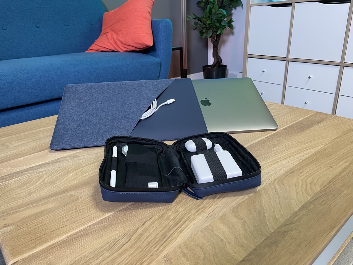 Passend zur Schutzhülle für das MacBook bietet Native Union eine kleine Zubehör-Tasche im gleichen Design an, auch hier habt ihr die Wahl zwischen einem blauen oder grauen Stoff. Die kleine Tasche finde ich aber auch praktisch, wenn man sein MacBook in einer anderen Schutzhülle transportiert.