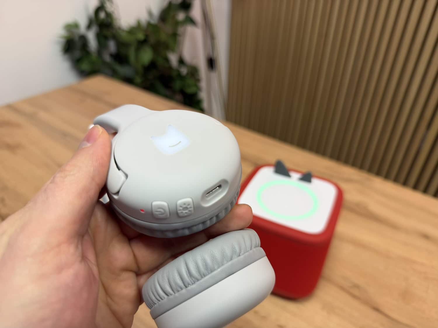 Lautstärke-Tasten sucht man dagegen vergeblich. Ohnehin dürfte es für die Kinder bedeutend intuitiver sein, die Lautstärke der Musik oder des Hörspiels weiterhin über die beiden Ohren der Toniebox zu steuern. Da muss man die Kopfhörer tatsächlich nicht mit zwei weiteren Tasten unnötig kompliziert gestalten.