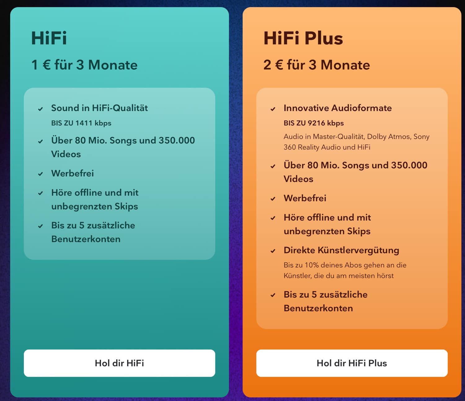 die frage die man sich hier stellen muss… ist man „audiophil“? also ein kritischer hörer bzw eine kritische hörerin? ist dem so und man hat ein gutes abhörsystem, dann führt kein weg an tidal hifi plus vorbei. ist dem nicht so, ist spotify, deezer und co vollkommen ausreichend. ich denke das normale tidal hifi (ohne plus) ist vergleichbar mit apple music bzw amazon music hd (die sogenannten hires optionen). spotify liegt bislang noch leicht dahinter, da sie auch noch keinen offiziellen hires zusatz im programm haben (soll dieses jahr für premium-kunden noch freigeschaltet werden).