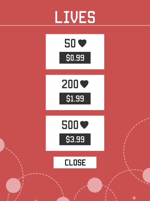 Trotz des Gratis-Angebots von Hyspherical wurden seitens der Entwickler von Monkeybin keine lästigen Werbebanner oder andere aufdringliche Mechanismen eingebaut. Das einzige Manko des Spiels sind die verfügbaren In-App-Käufe, mit denen sich zusätzliche Leben kaufen lassen. Denn: Zu Beginn ist der Gamer mit einem Kontingent von 40 Leben ausgestattet – für jedes gescheiterte Level verliert man allerdings eines. So heißt es über kurz oder lang, mindestens 89 Cent für ein Paket von 50 Leben, 1,79 Euro für 200 Leben oder gar 3,59 Euro für 500 Leben auszugeben. Wer ein Genie ist, wird diese selbstverständlich nicht in Anspruch nehmen müssen – aber davon ist wohl nicht auszugehen.