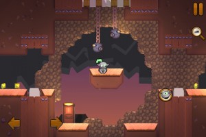 Die Steuerung ist einfach und mal etwas anderes. Mit zwei Pfeilen bewegt man die Katze nach rechts oder links, auf der rechten Seite kann man Niko „aufziehen“, so dass er in die entsprechende Richtung fliegt. Mit ihm kann man an Wänden hochklettern oder größere Hindernisse überwinden. Nach und nach kommen weitere Gefahren hinzu, die das Auffinden der Goldbarren nicht einfacher macht.