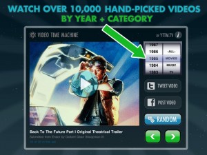 Die Handhabung der App ist denkbar einfach und nimmt den Nutzer spielend einfach mit auf eine kleine Zeitreise. Mit einem Drehrad stellt man das gewünschte Jahr und die Video-Kategorie ein, und schon bekommt man ein passendes YouTube-Video präsentiert, das zu dieser Auswahl passt.