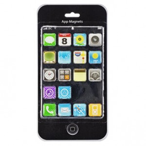 Bei den einzelnen Magneten handelt es sich um die Standard-Icons vom iPhone, nur in kleinen Details unterscheiden sie sich von ihren Originalen. Das trübt den Spaß zwar ein wenig, verhindert so allerdings eine Markenrechtsverletzung und macht den Preis so niedrig. Von uns gibt es jedenfalls eine klare Kaufempfehlung, bei 4,99 Euro kann man schließlich nichts falsch machen. Grafik: real;-