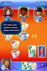 Schon seit dem 14. Januar 2009 befindet sich die Universal-App im Store, war bis dato aber nur in englischer Sprache vorhanden. Eines der letzten Updates hat Phase 10 nun deutschsprachig gemacht, was natürlich ein großer Vorteil ist.