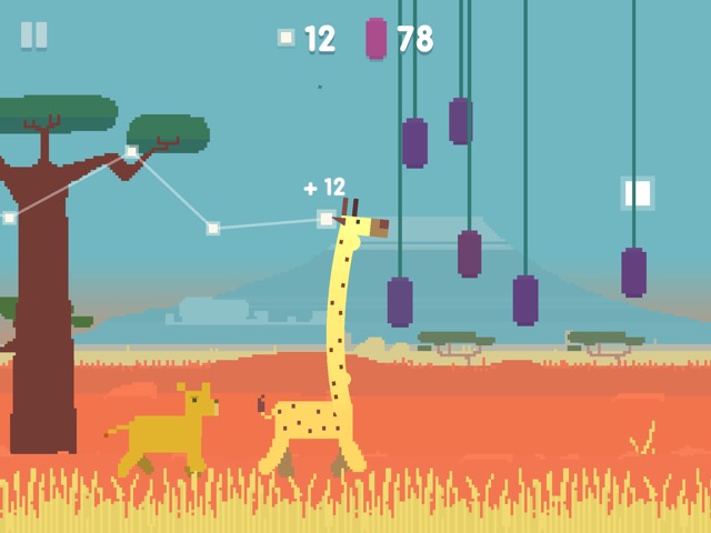 Oh My Giraffe verfügt über eine witzige Pixelgrafik und ist umgebungstechnisch wohl in der afrikanischen Savanne angesiedelt – warum sonst sollte es als Widersacher eine Horde von Löwen geben, die die beerenfressende Giraffe verfolgen? Aber keine Sorge: Wer nun glaubt, die arme Giraffe werde am Ende jeder Partie in blutrünstiger Manier von ihren Verfolgern zerfleischt, der irrt gewaltig. Haben die Löwen die langhalsige Protagonistin erreicht, springt diese einfach in die Luft und legt sich dann mit einem „zzzzzz“ auf den Boden zum Schlafen. So können sogar auch Kinder einen Versuch mit Oh My Giraffe wagen.