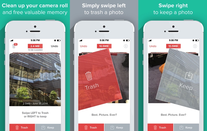 Flic: Diese App schafft Platz und Ordnung auf dem iPhone. Die App zeigt Fotos des vergangenen Monats an und stellt den Nutzer vor eine einfache Wahl: Behalten oder löschen? Man wischt einfach mit dem Daumen nach links, um das Foto in den Papierkorb zu werfen. Will man es behalten, genügt ein Fingerwisch nach rechts. Für beide Aktionen kann man in Flic auch zwei Buttons am unteren Bildschirmrand verwenden. Sind alle Bilder des letzten Monats markiert, werden die zu löschenden Fotos noch einmal in einer Übersicht angezeigt, bevor man sie im Nirvana verschwinden lassen kann. (99 Cent, iPhone, kompletter Bericht)