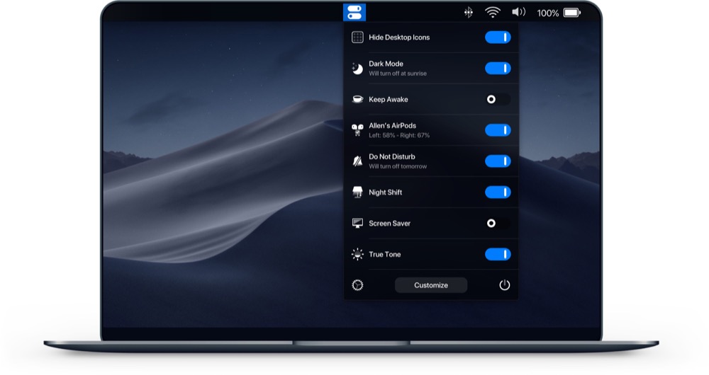 So kann man beispielsweise mit nur zwei Mausklicks den Mac daran hindern, in den Standby-Modus zu wechseln oder den Bildschirmschoner manuell zu aktivieren. Auch das Verbinden der AirPods ist etwas einfacher zu erreichen, insbesondere wenn man das Bluetooth-Icon möglicherweise deaktiviert hat.