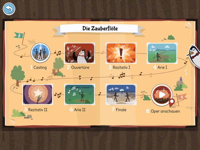 Mit dem Opera Maker können kleine und große Dramaturgen ihre eigene Oper erfinden und inszenieren – wer sich nicht für ganz so einfallsreich hält, kann auch aus drei Klassikern, der Zauberflöte, Wilhelm Tell und Hänsel & Gretel, auswählen, und diese nach eigenem Gusto gestalten. So heißt es in verschiedenen Schritten im Opera Maker nicht nur, den Hintergrund und Deko-Gegenstände der Bühne sowie Kostüme und Namen für die Beteiligten auszuwählen, sondern auch Arien und Melodien zusammenzustellen. Insgesamt stehen in der App 36 Musikstücke und 81 Charaktere zur Verfügung.