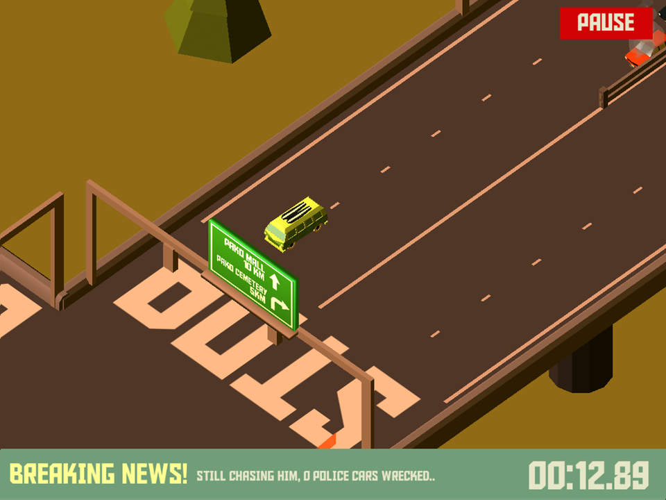 Auf einem Mall-Parkplatz, in einem Vorort oder auf der Autobahn wird man von der Polizei verfolgt und muss solange wie möglich flüchten. Sobald es zur ersten Kollision kommt, egal ob mit der Polizei oder mit einem anderen Objekt, ist die Runde vorbei und die erreichte Zeit wird als Highscore gespeichert.