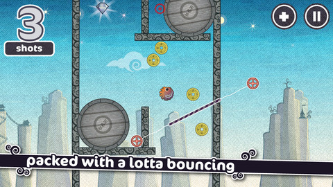 Tippt man mit zwei Fingern auf das Display, erstellt man dazwischen eine Art Trampolin, auf dem das kleinen Tierchen in die Höhe hüpft. Je weiter man die Finger dabei auseinander hält, desto höher prallt das Tier ab. Auch der Winkel kann natürlich frei bestimmt werden.