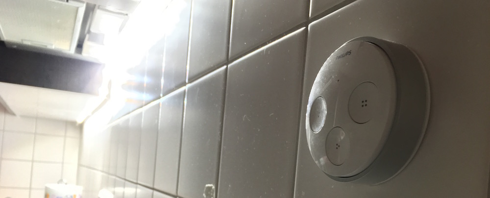 In der Küche möchte man ungern sein iPhone auspacken, nur um das Licht einzuschalten. Meistens hat man ja ohnehin keine Hand frei oder das iPhone gar nicht mit dabei, da es zum Beispiel noch im Wohnzimmer liegt. Da ich dort allerdings seit einiger Zeit den Lichtschalter aus dem Hue Wireless Dimming Kit im Einsatz habe, war der alte Hue Tap Schalter übrig – und konnte dank Wandhalterung und Klebestreifen mehr als bequem an den Fliesen angebracht werden.
