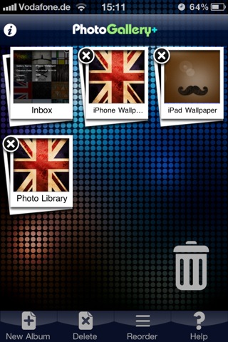 Beim Öffnen der App müssen – wie bei allen anderen Programmen, die auf die Fotoalben zugreifen wollen – auf dem iDevice die Ortungsdienste aktiviert sein, was einer Restriktion seitens Apple geschuldet ist. In einem Hauptmenü finden sich die angelegten Alben ähnlich der iPad-Ansicht in Fotostapeln wieder, dort können diese umbenannt, verschoben, neu erstellt oder gleich ganz gelöscht werden. Auch ein „Trash“-Ordner, ähnlich dem Papierkorb auf dem Rechner, ist vorhanden.