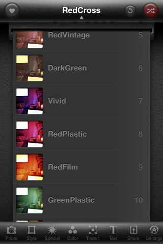 Neben diesen Funktionen gibt es auch noch die standardmäßig fast überall vorhandenen Möglichkeiten des Zuschnitts und Drehen der Bilder. Weiterhin stellt PictureShow verschiedene Rahmen, Texturen, Lichtlecks und auch variable TiltShift- und HDR-Effekte zur Verfügung. Wer besonders in Eile ist, findet auch noch eine Shuffle-Funktion, mit der das vorhandene Bild mit zufällig ausgewählten Effekten versehen wird.