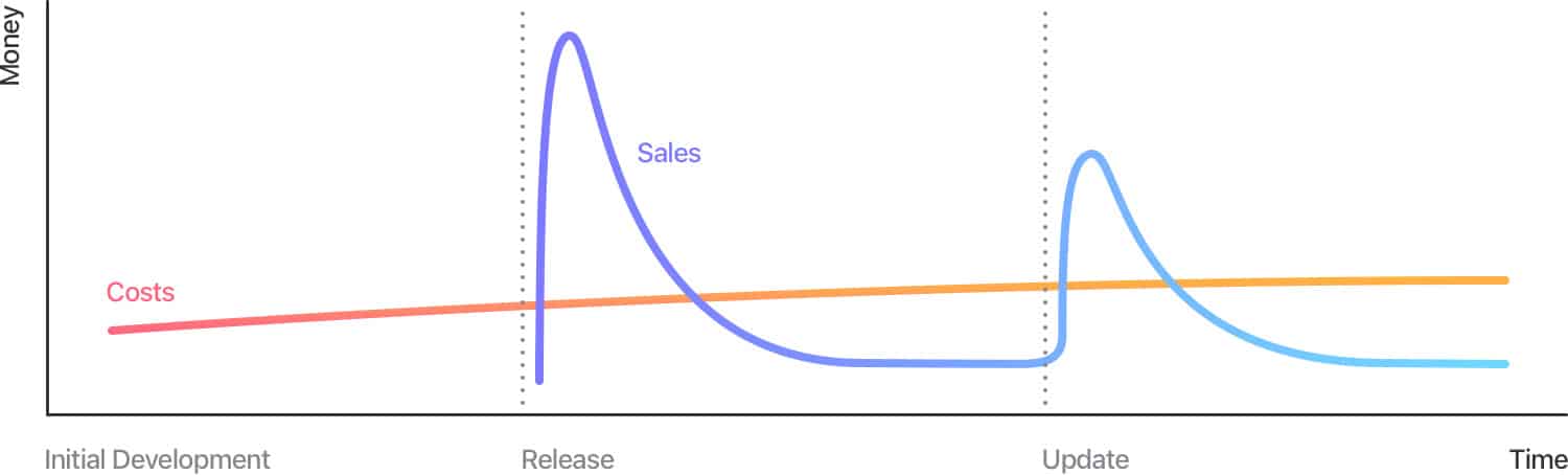 Apple ist das schon ein wenig mit verantwortlich. Denn es gibt keine Möglichkeit für Entwickler eine App in V2 anzubieten und parallel dazu V1 online zu lassen. Somit müssen sie eigentlich schon fast lebenslang Updates den Kunden geben und diese müssen irgendwie bezahlt werden.