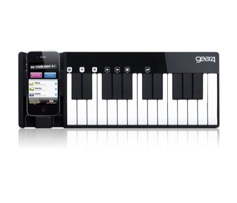 Das PocketLoop ist aufgebaut wie ein normales Keyboard, nur dass man an der linken Seite sein iPhone oder iPod Touch einstecken kann, um Loops zu erzeugen.