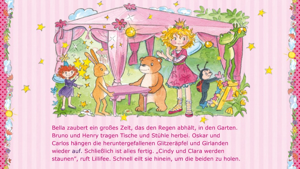 „Prinzessin Lillifee: Gute-Nacht-Geschichten“ haben wir euch schon ausführlich vorgestellt, heute konzentrieren wir uns auf das neue „Prinzessin Lillifee: Süße Feen-Geschichten – Band 2“ (App Store-Link), das ab sofort zum Einmalpreis von 2,99 Euro für iPhone und iPad zum Kauf bereitsteht. Der Download ist 112 MB groß und integriert zwei schöne Geschichten. Wenn ihr beide Apps kaufen wollt, könnt ihr zum App-Bundle greifen, das im Paket nur 3,99 Euro (App Store-Link) statt 5,98 Euro kostet.