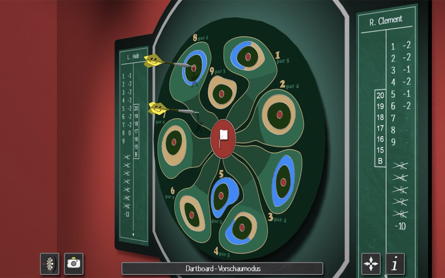 So kann man nicht nur seine eigenen Pfeile gestalten und gegen 28 verschiedene Computer-Gegner antreten, sondern auch verschiedene Dart-Boards und Spielmodi verwenden. Und hier kommt dann tatsächlich etwas Abwechslung in die ganze Sache.