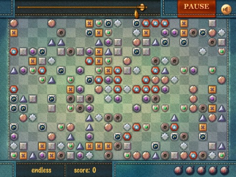 Dazu sieht man ein großes Feld, welches mit vielen kleinen unterschiedlich aussehenden Steinen bestückt ist. Diese Buttons müssen über Eck kombiniert werden. Damit eine Kombination als gültig erkannt wird, müssen mindestens zwei Steine gleich sein – mehrere sind natürlich auch möglich.