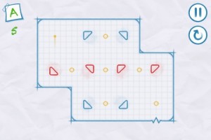 Gerne möchten wir euch nochmals das Spieprinzip kurz erläutern. Ziel des Spiels ist es, in jedem Level einen goldenen Strahl mit Hilfe von drehbaren roten Dreiecken so zu lenken, dass auf dem Weg alle im Level befindlichen goldenen Ringe eingesammelt werden. Durch einfaches Antippen des Bildschirms drehen sich die Dreiecke. Je weniger man an den Dreiecken herumgedreht hat, desto besser fällt die abschließende Wertung aus.