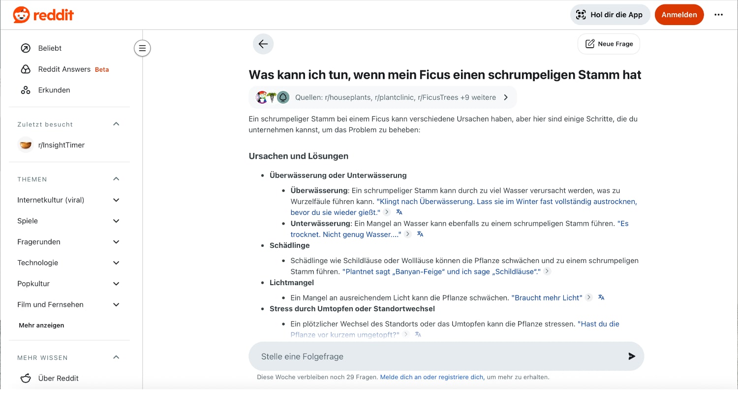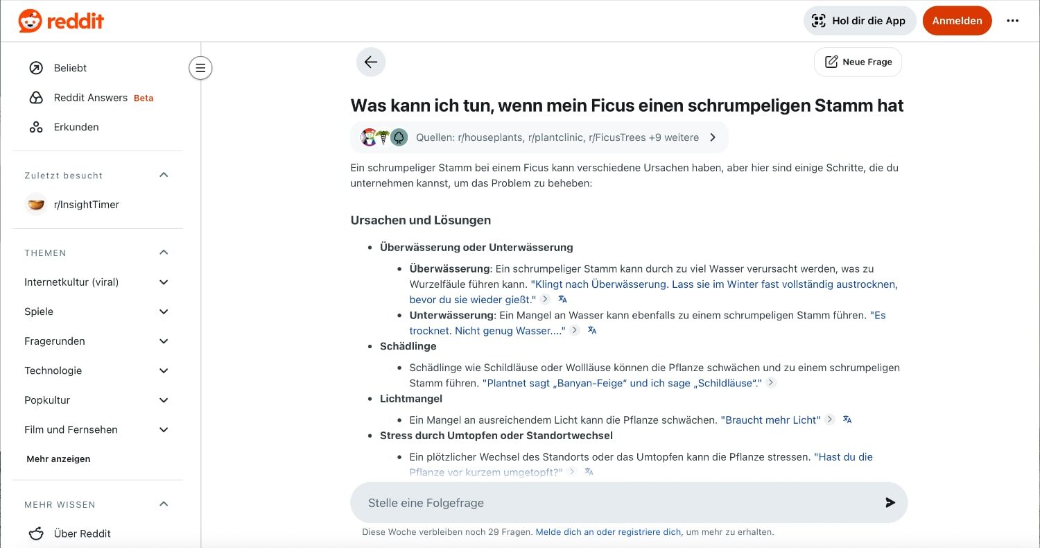 Ich persönlich bin ein großer Fan von Reddit, auch wenn ich die Plattform eher als Leserin und nicht als Beitragende nutze. Trotzdem bin ich immer wieder begeistert davon, zu wie vielen unterschiedlichen Themen ich hier ausführliche Informationen finden. Ob ich nun danach suche, wie ich meinen Ficus retten oder Dielen am besten abschleifen kann oder wie diese oder jene Filmszene von anderen gedeutet wird, man findet schlicht zu allem etwas – und kann ohne Probleme tiefer in ein Thema einsteigen. Mit dem neuen Answers-Features kann das sogar noch strukturierter erfolgen.