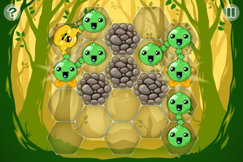 Das Spielprinzip klingt einfach: alle Peablin-Hände müssen miteinander verbunden werden, damit das Level abgeschlossen werden kann. „Lasse keine Hand zurück“ ist das Motto der runden, grünen Viecher, und so müssen alle Hände einen Abnehmer finden. Das ist gar nicht so einfach, denn anders als wir Menschen haben Peablins ein, zwei, drei oder auch vier Hände, die sich nach einem Gegenpart sehnen. Auf einem wabenartigen Spielfeld gibt diese Gegebenheit dann schon bald ein ziemliches Rumgeschiebe.