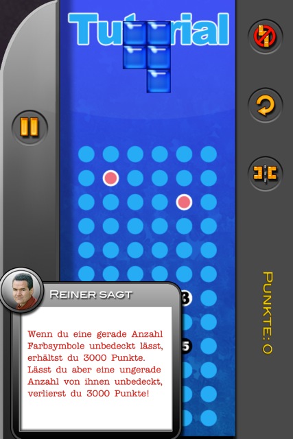 Woher der gute Herr Knizia immer wieder seine Ideen nimmt, ist mir ein Rätsel. Auch FiTS ist wieder einmal ein gefundenes Fressen für alle Liebhaber von vertrackten Taktik- und Knobelspielen. In einem kleinen, aber gut erklärten Tutorial führt der Spieleautor selbst in das Gameplay von FiTS ein. Im Großen und Ganzen geht es darum, mit Tetris-ähnlichen Blöcken ein Spielfeld zu füllen, dabei aber bestimmte Felder bewusst auszulassen bzw. zu überdecken.