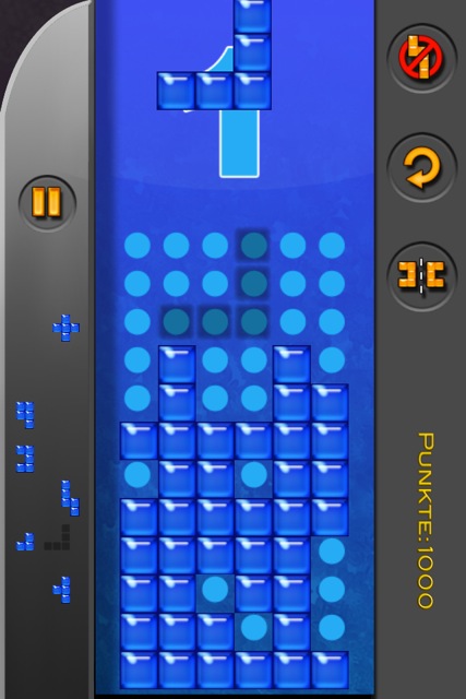 Für diese Moves gibt es Punkte, entweder positive oder negative, je nachdem, welche Felder besetzt werden. Kann man mit der vorgesetzten Block-Formation nichts anfangen, ist es möglich, diesen zu verwerfen. Man sollte dabei aber bedenken, dass das Spielfeld trotzdem bis oben gefüllt werden sollte, um keine unnötigen Punkte zu verlieren.