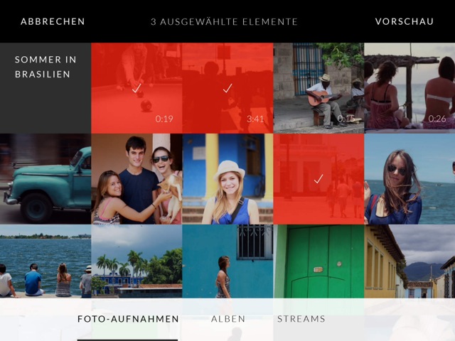 Im Bearbeitungsbereich „Compose“ könnt ihr nun alle Clips individuell verbessern. So könnt ihr diese schnell deaktivieren, duplizieren oder weiter aufsplitten. Mit der Reverse-Funktion lassen sich die Videos einfach umkehren, um tolle Effekte zu erzielen. Weiterhin ist eine Slo-Mo-Funktion mit an Bord, mit der ihr einzelne Clips verlangsamen könnt. Wer hier gute und passende Videos einfügt, schneidet und bearbeitet, kann so einen Clip mit Extras und tollen Effekten erstellen.