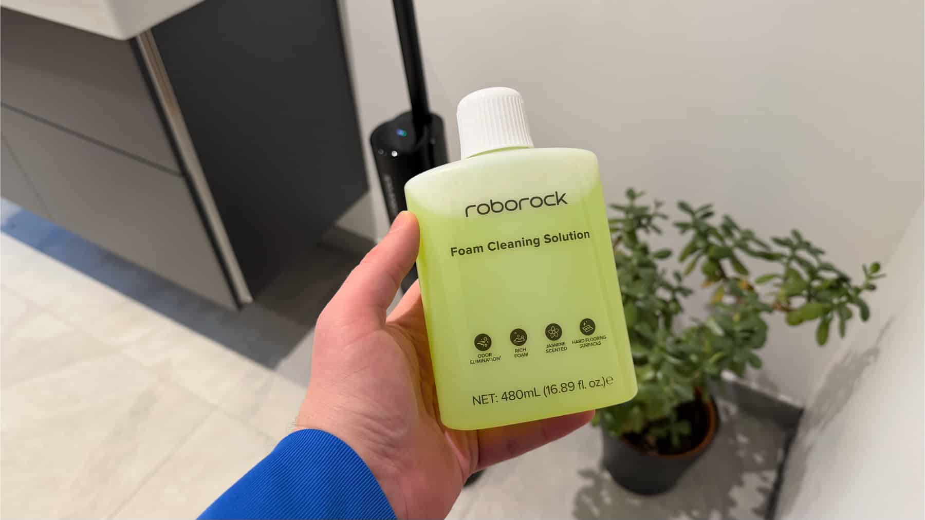Während die Zugabe von Reinigungsmitteln bei vielen Wischsaugern optional ist, hat Roborock hier lange zurückhaltend agiert und selbst bei Premium-Preisen darauf verzichtet. Da der F25 Ace Pro nun aktiv Schaum nach vorne sprüht, ist es konsequent, dass Roborock das passende Reinigungsmittel direkt beilegt.