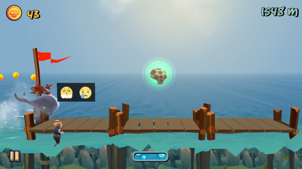 Zusätzlich gilt es, jeweils drei verschiedene Missionen zu erfüllen. Manchmal muss man einfach nur eine gewisse Distanz absolvieren, mal besondere Aufgaben erfüllen. Beispielsweise Möwen erschrecken, ein bestimmtes Power-Up einsammeln oder einen Pirat vom Steg stoßen.