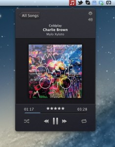 Significator (App Store-Link) verankert sich nach der Installation in der oberen Menüleiste und wird durch das typische iTunes-Icon dargestellt. Öffnet man das Programm, hat man einen Schnellzugriff auf die komplette iTunes-Bibliothek.