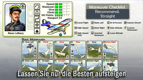 Nach jedem erfolgreichen Gefecht kann man zum Beispiel Upgrades für Waffen durchführen oder weitere Piloten rekrutieren. Außerdem gibt es Staffelnachrichten und Top-Missionen oder eine Übersicht aller Flugzeuge. Das Fliegen von Missionen macht Spaß, vorher kann man den Schwierigkeitsgrad einstellen. Auf dem Schlachtfeld können natürlich verschiedene Manöver geflogen werden, die man später auch einzelnen Piloten zuweisen kann. Genau das macht das Spiel interessant, da man nie genau weiß, was der Gegner gerade macht – befindet man sich zum Beispiel in den Wolken, kann man nicht angegriffen werden, aber selbst auch nicht angreifen.