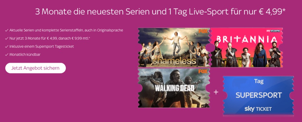 - Sky Ticket drei Monate lang für insgesamt 4,99 Euro (zum Angebot)