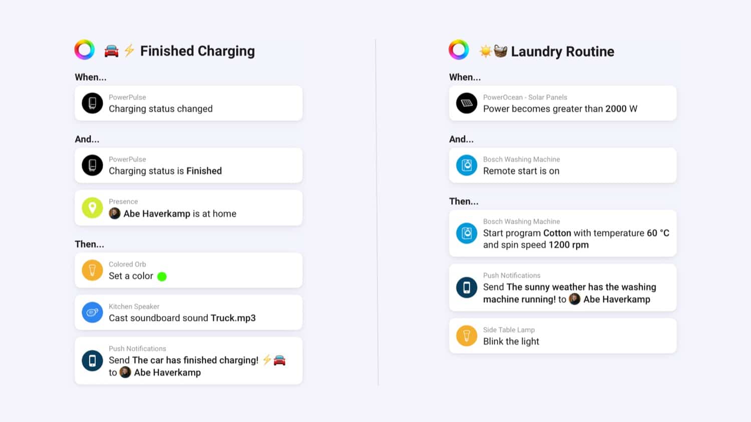 Man kann eine smarte Lampe automatisch auf Grün umstellen, wenn das EcoFlow-EV-Ladegerät den Ladevorgang des Autos in der Garage abgeschlossen hat. Oder man kann die Waschmaschine starten, wenn die EcoFlow-Solarpaneele überschüssige Energie erzeugen.