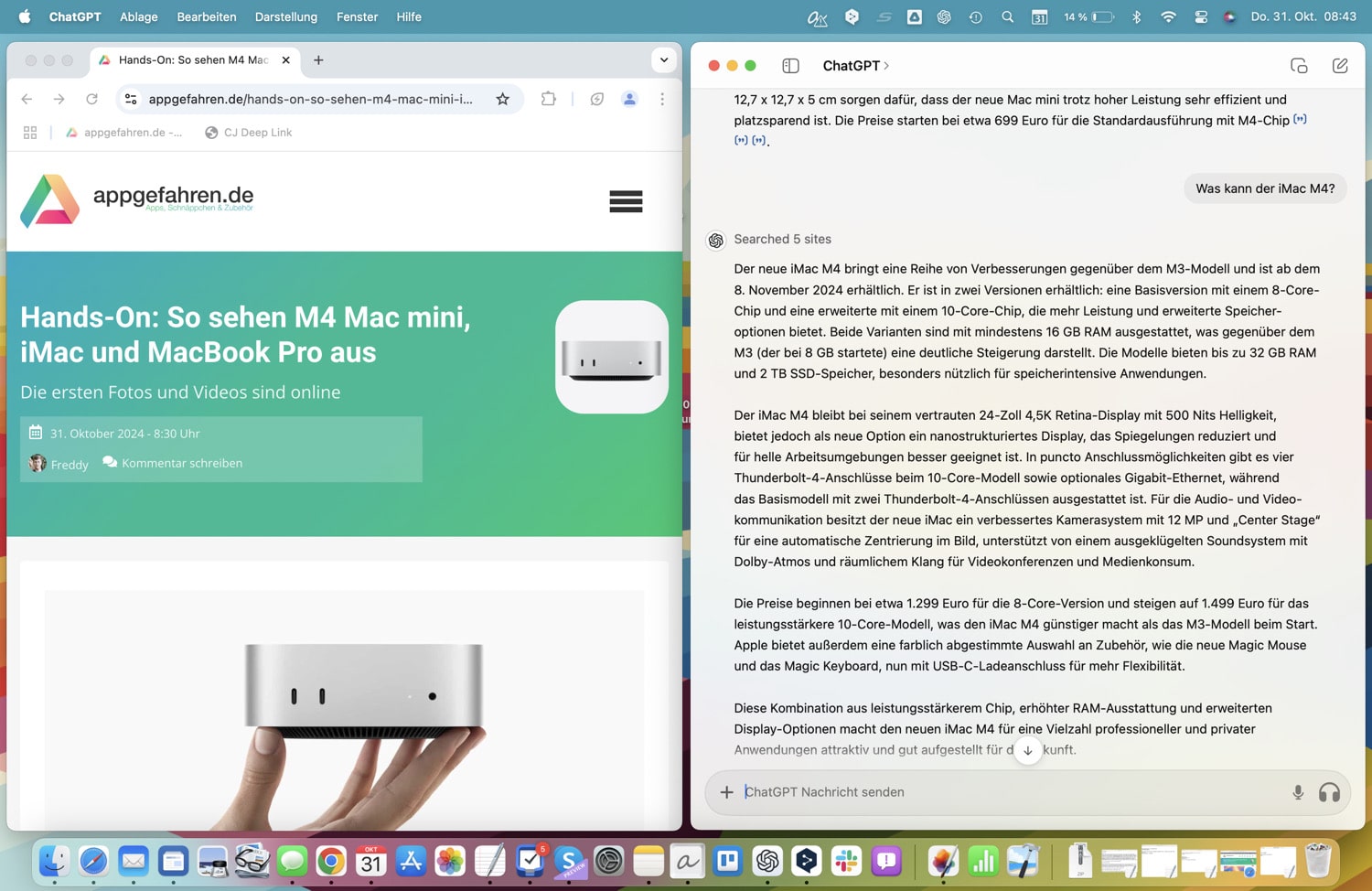 Das Update auf macOS 15.1 bringt nicht nur erstmals Apple Intelligence nach Deutschland, sondern auch Verbesserungen für die Fensterverwaltung. Nach dem Update ist die Funktion automatisch aktiviert, mit der ihr Fenster an den Rand ziehen und besser anordnen könnt.