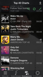 Hat man mehr als ein Radio in seiner aktiven Favoriten-Liste, bekommt man natürlich mehr Songs, als man überhaupt hören kann. Daraus ergibt sich eine wirklich nette Funktion: Man kann Lieder überspringen und die Titel hören, auf die man gerade Lust hat. Gedanken über den Datenverbrauch braucht man sich dann übrigens auch nicht mehr zu machen. Sobald eine WiFi-Verbindung vorhanden ist, zeichnet die App die aktuell gespielten Lieder der ausgewählten Sender auf – die Musik lässt sich dann unterwegs auch ohne aktive Internetverbindung hören.
