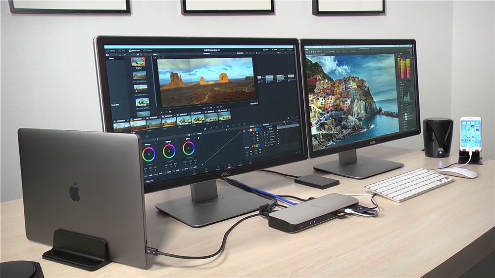 Über den schnellen, rückwärtigen Thunderbolt-Anschluss mit 87 Watt kann man zum Beispiel das MacBook Pro anschließen, das gleichzeitig aufgeladen wird. Dazu benötigt man ein Thunderbolt 3-Kabel, das nicht im Lieferumfang enthalten ist. Der Front-USB-Anschluss ist übrigens nur zum Aufladen von angeschlossenen Geräten, wobei dieser Port immer mit Strom versorgt wird, auch wenn kein MacBook verbunden ist. Das Echo 11 Thunderbolt 3 Dock unterstützt bis zu zwei 4K-Displays, eines via HDMI und das andere via Thunderbolt.