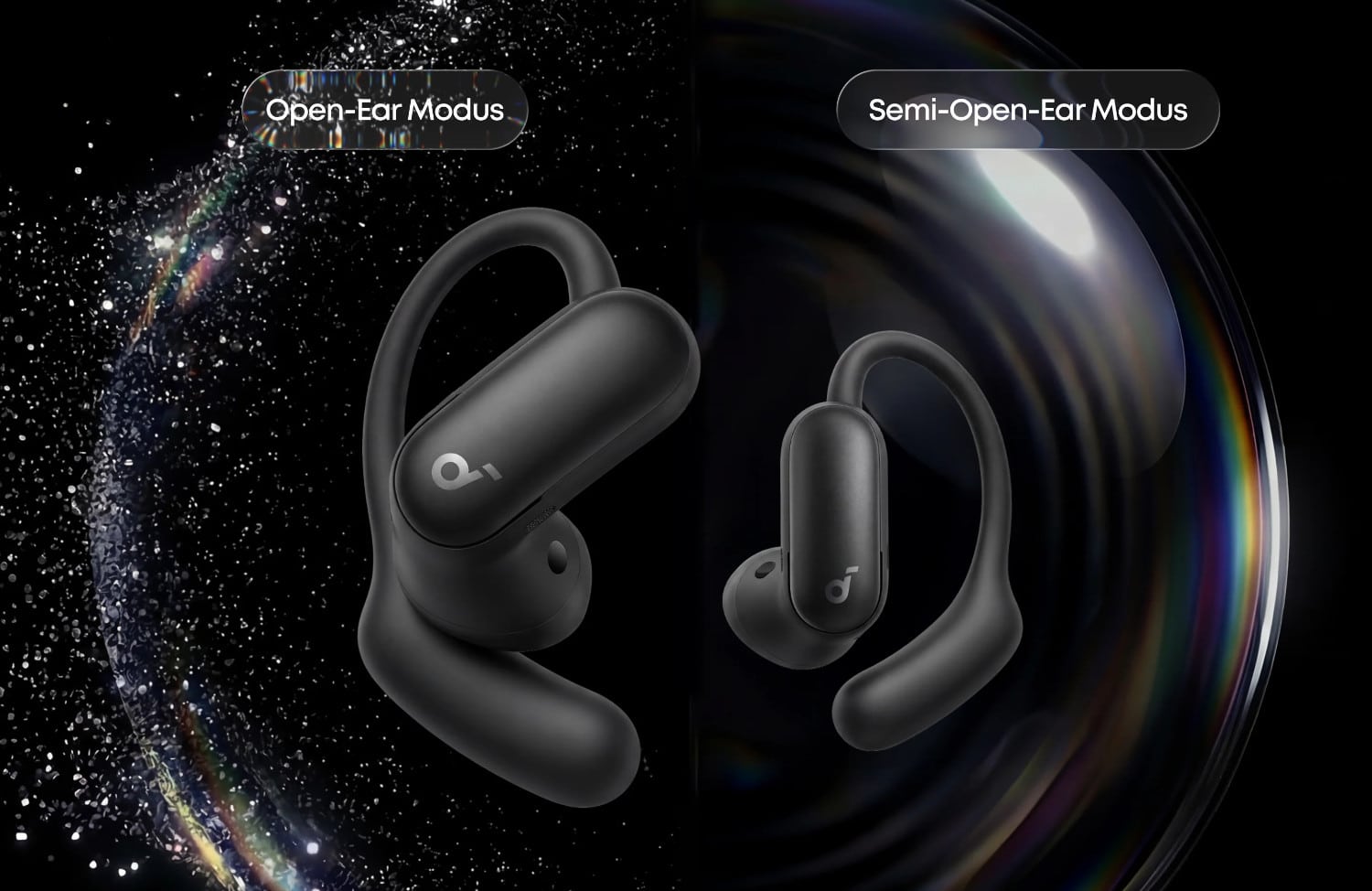 Die flexibel anpassbaren Ohrbügel sorgen mit ihren fünf Einstellungsstufen für einen nahtlosen Wechsel zwischen offenem Open Ear-Hören und fokussiertem In-Ear-Klang. Im Inneren arbeitet ein auf Wunsch optional einstellbarer, adaptiver ANC-Algorithmus, der die Umgebung bis zu 380.000 Mal pro Sekunde analysiert. „Das Ergebnis ist ein neues Hörerlebnis, das sich dynamisch an den Alltag, die Arbeit oder das Training anpasst, ohne zwischen zwei Kopfhörerarten wechseln zu müssen“, berichtet Soundcore dazu.