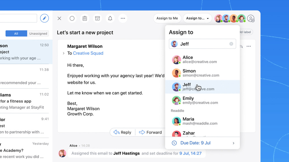 „Heute führen wir freigegebene Posteingänge in Spark ein – eine unschätzbare neue Funktion, die es mehreren Teammitgliedern ermöglicht, gleichzeitig auf gemeinsame E-Mail-Konten (wie sales@ oder info@) zuzugreifen und die Zusammenarbeit zu verbessern, indem sie E-Mails zuweisen, Fristen festlegen, E-Mails intern diskutieren und sogar E-Mails gemeinsam in Echtzeit erstellen.“